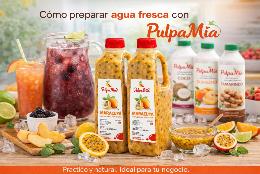 Preparar agua fresca con pulpa de fruta es una forma rápida, práctica y deliciosa de disfrutar una bebida natural. Gracias a las pulpas PULPA MÍA, puedes preparar fácilmente agua de fruta casera con sabor auténtico sin necesidad de pelar, cortar o licuar fruta fresca.